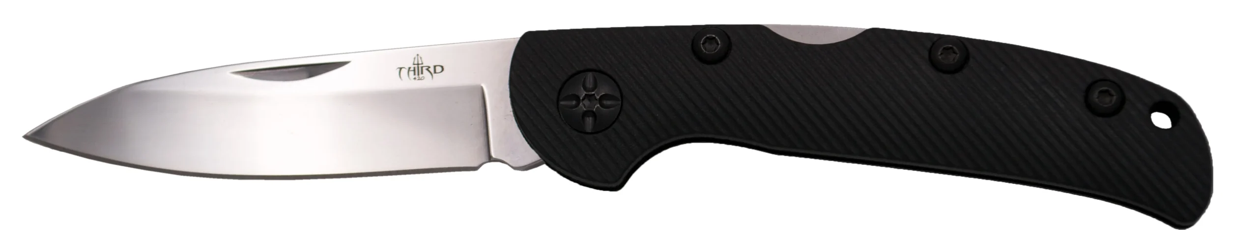 Navaja de bloqueo Third N76N, mango de fibra de nylon en negro, hoja de acero inox 420 de 8 cm acabada en brillo espejo. Ref. N76N
