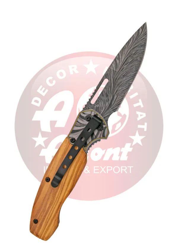 Navaja Third con Mango de Madera de Olivo y Hoja Decorada