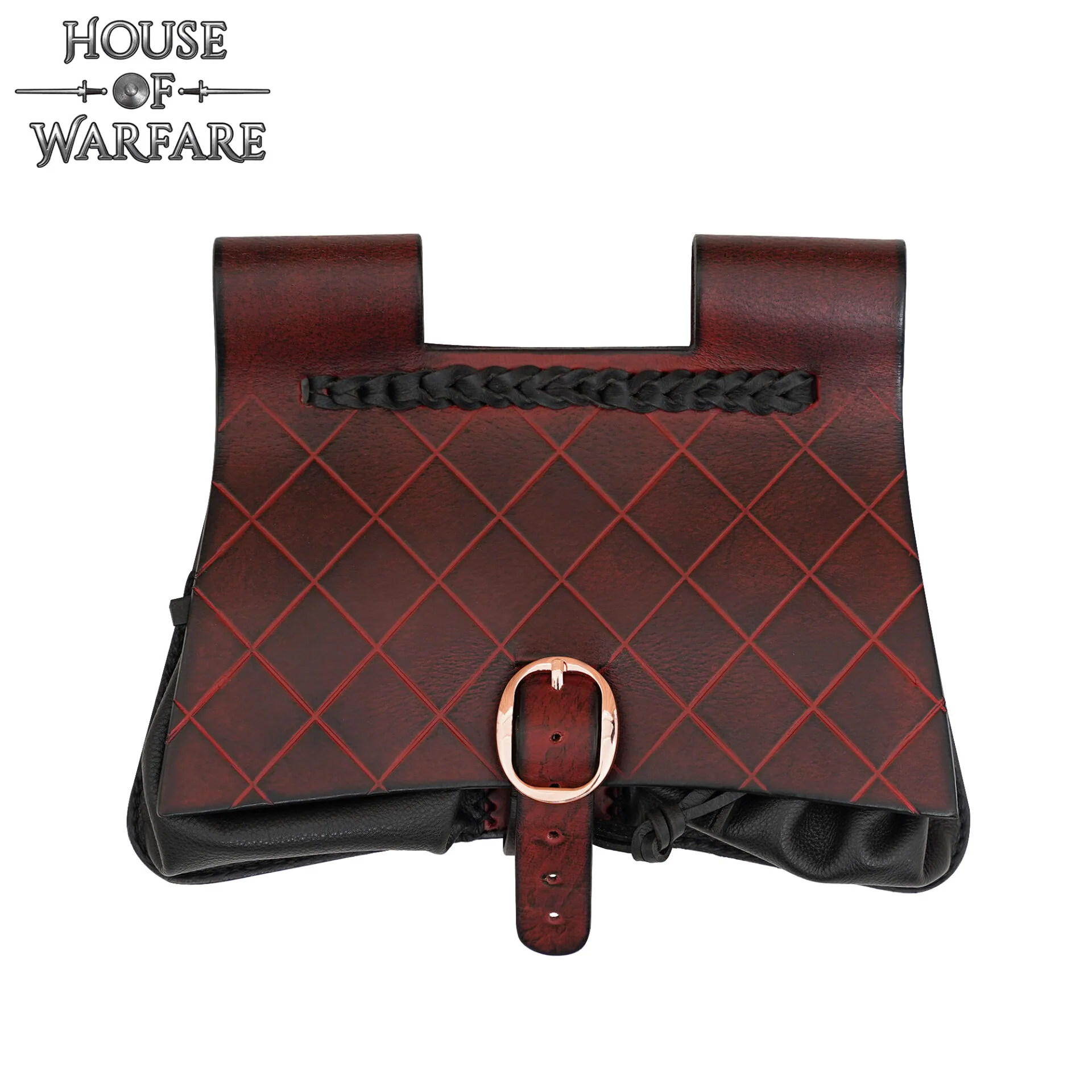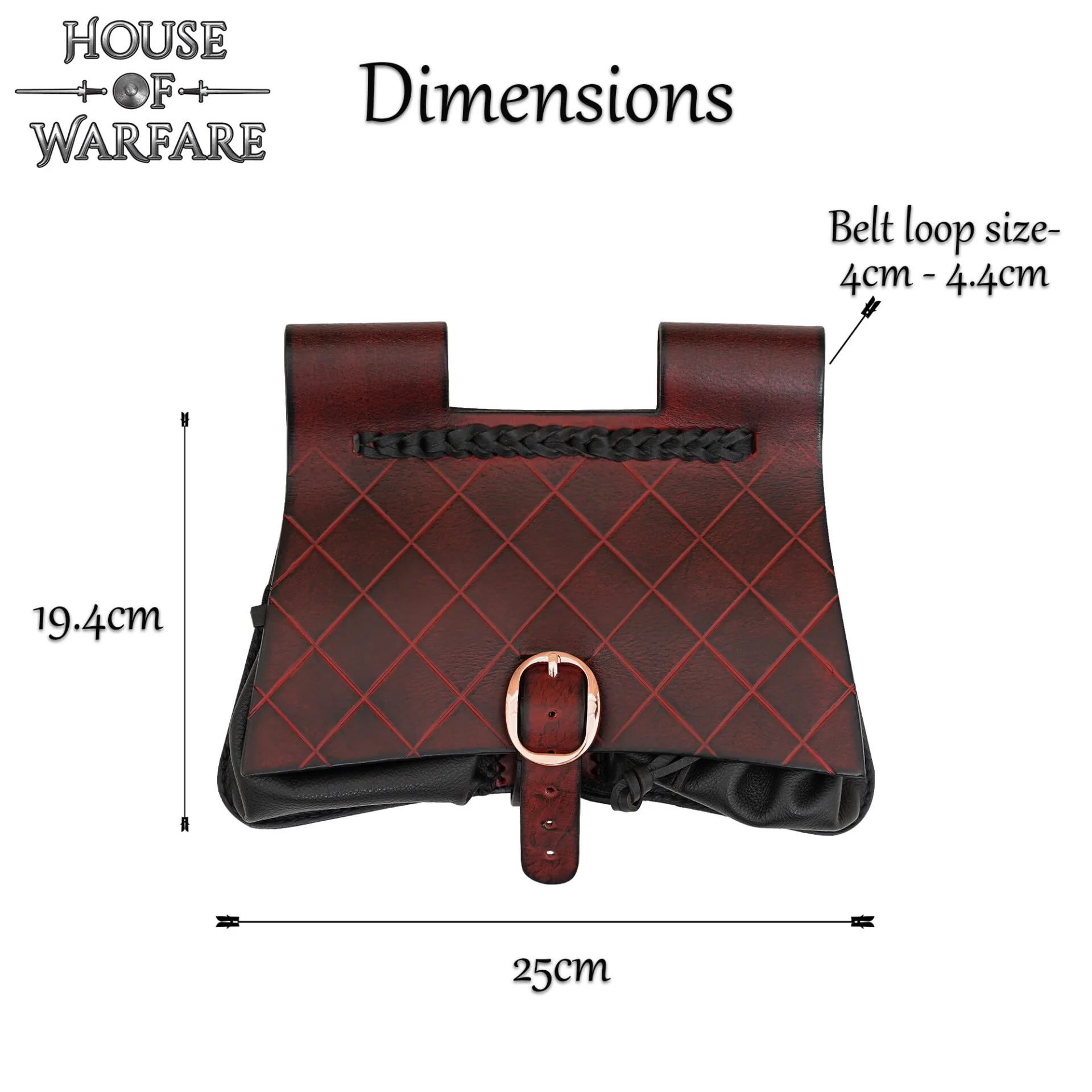 Esta riñonera de inspiración histórica presenta un distintivo diseño de rombos cruzados en la solapa, que añade atractivo visual y evoca la artesanÃa de la época. El robusto cierre de hebilla de latón asegura sus pertenencias, mientras que el interior revela múltiples compartimentos individuales con cierres de cordón, lo que le permite mantener las monedas, hierbas, herramientas u objetos personales bien organizados.