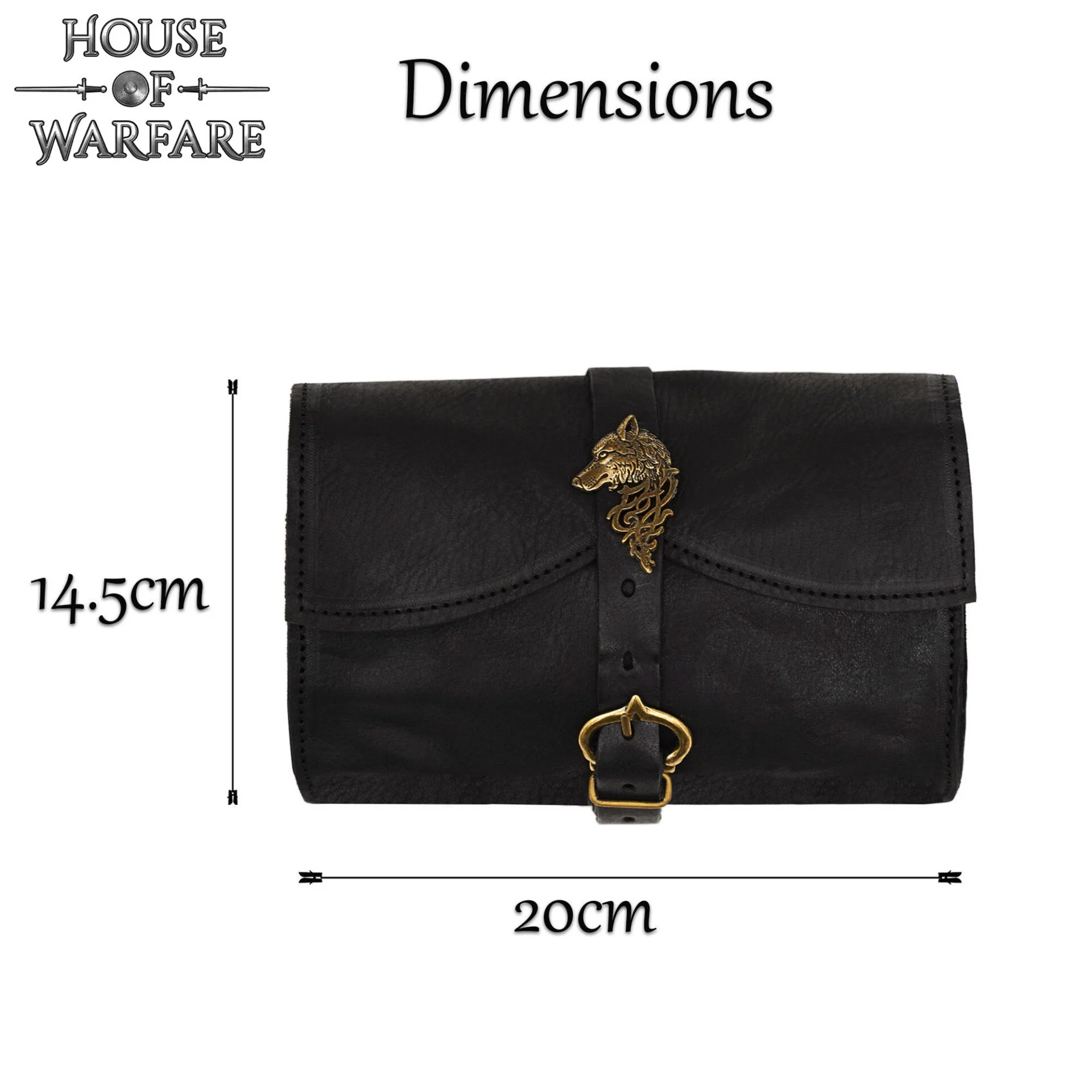 La bolsa está diseñada con una solapa curvada y una robusta correa de cuero sujeta por una hebilla de latón macizo, que proporciona tanto impacto visual como un práctico cierre. Su tamaño es ideal para transportar objetos esenciales de uso cotidiano -como monedas, llaves, pedernal o herramientas- sin dejar de ser compacta y fácil de llevar en ferias, campamentos o como personaje durante eventos de inmersión.