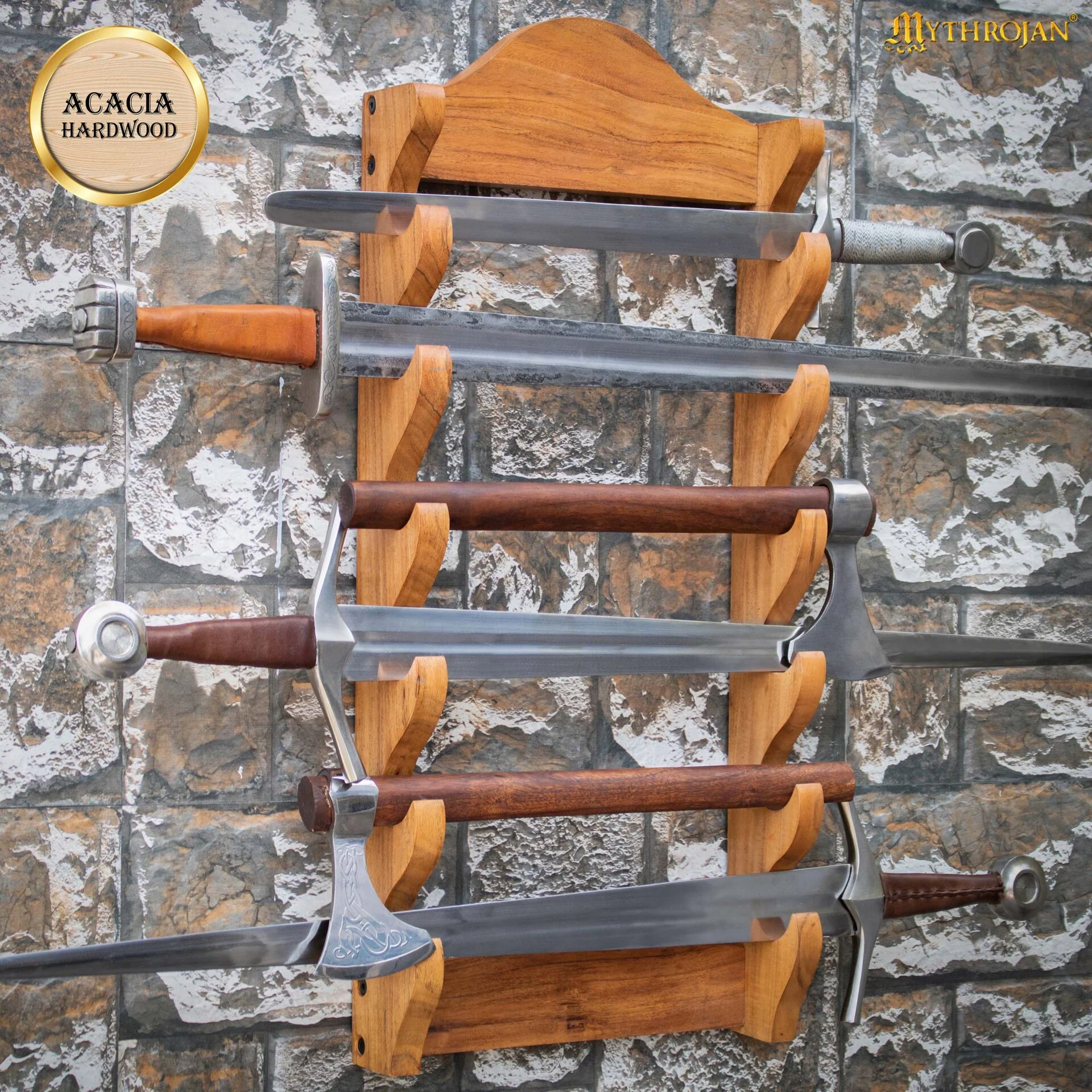 Presente su preciada espada con elegancia y autenticidad gracias a este soporte para espadas de madera de un nivel, fabricado en madera de acacia y estilizado con una silueta cl谩sica de la 茅poca victoriana. Su acabado de grano de madera natural desprende un encanto atemporal, por lo que es la elecci贸n perfecta para coleccionistas, entusiastas medievales y decoradores hist贸ricos.