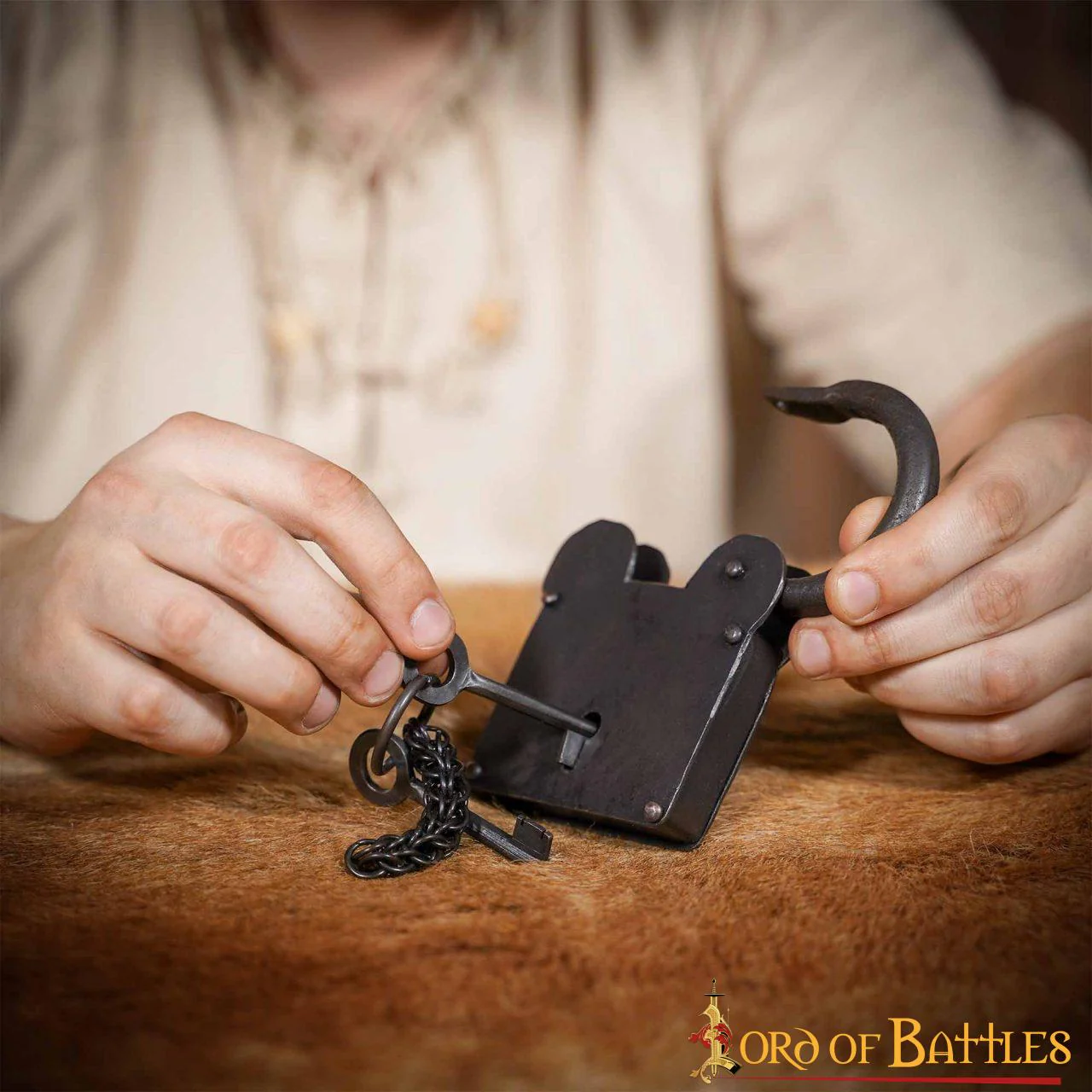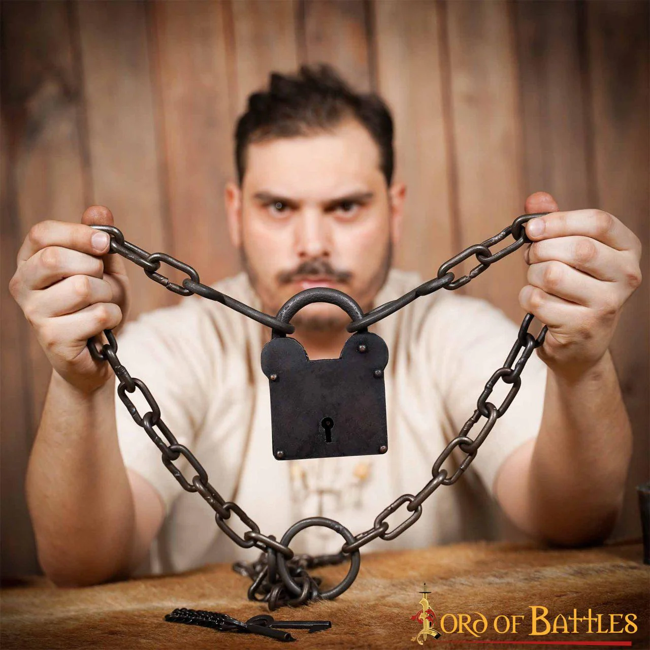 Candado medieval de hierro con llavero de cota de malla – Un candado robusto para mayor realismo y seguridad